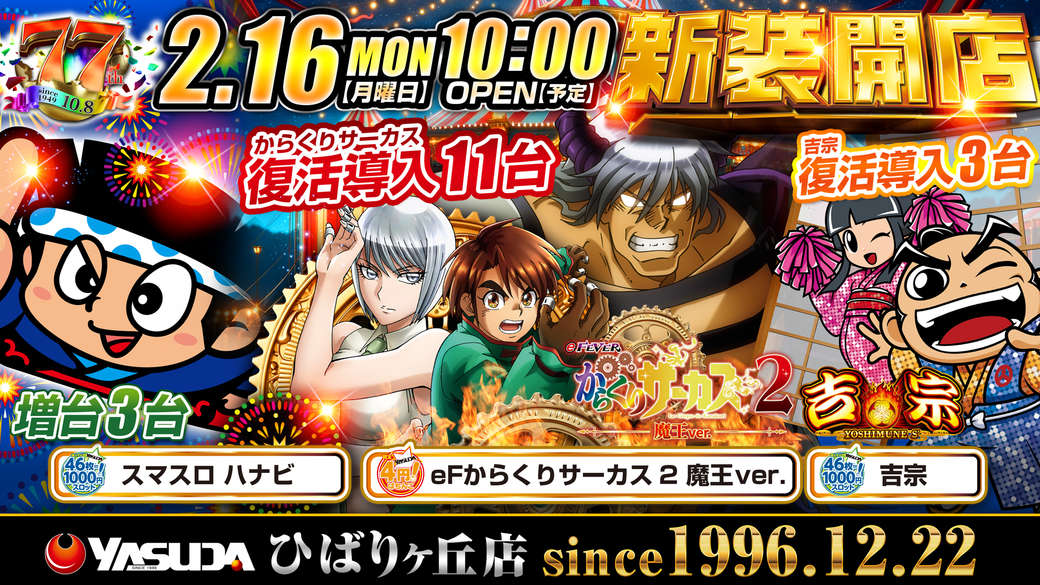 営業時間/10:00~23:00 (平常営業日) 遊技終了時間 22:45