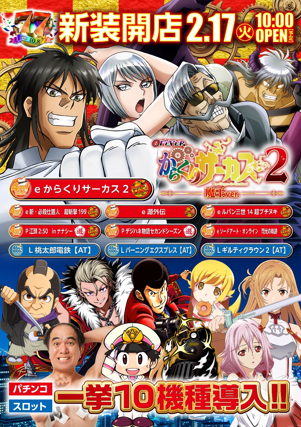 営業時間/10:00~23:00 (平常営業日) 遊技終了時間 22:45