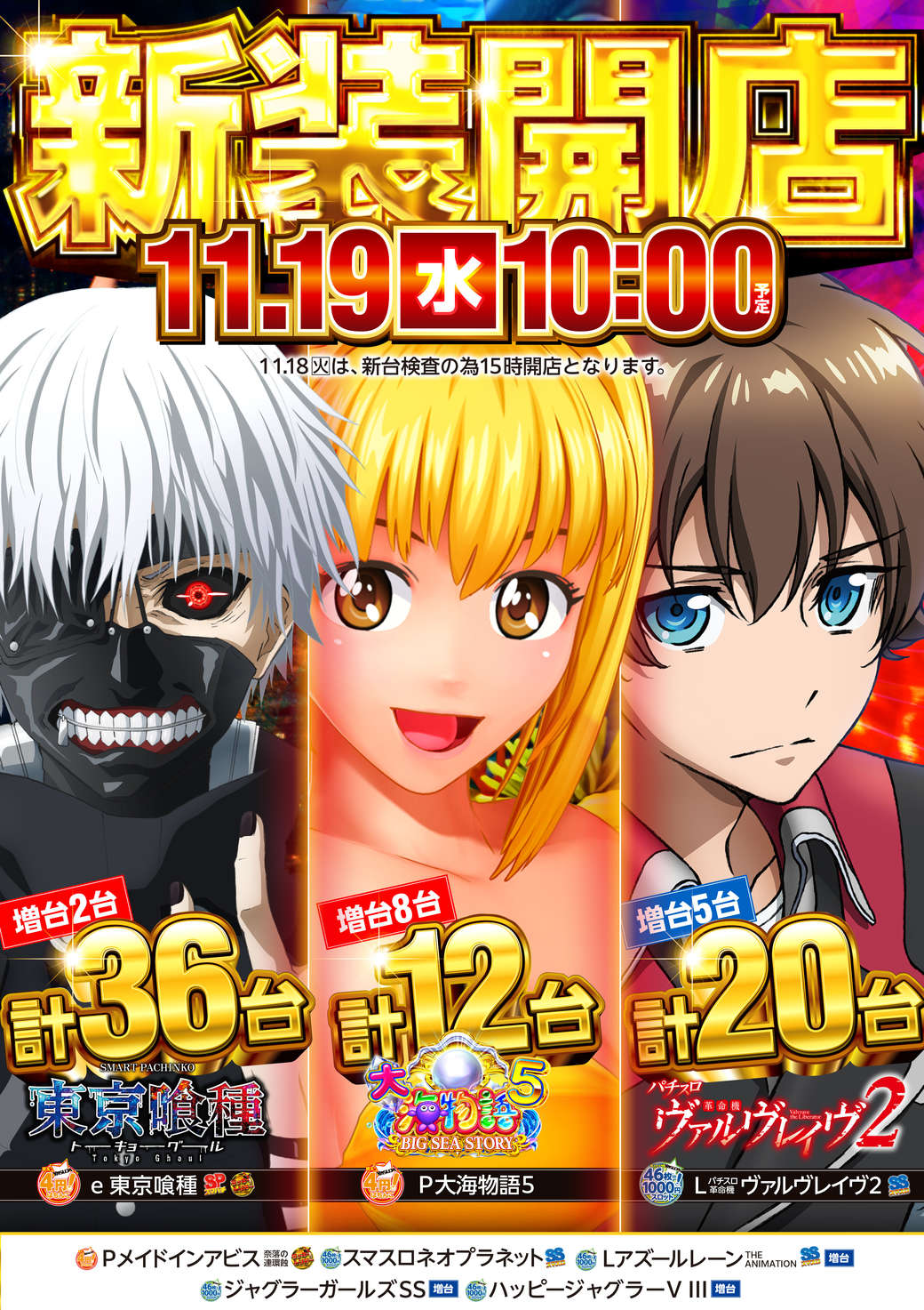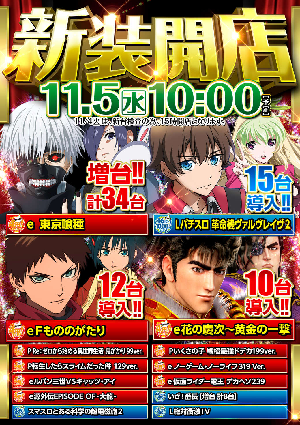 営業時間/10:00~23:00 (平常営業日) 遊技終了時間 22:45